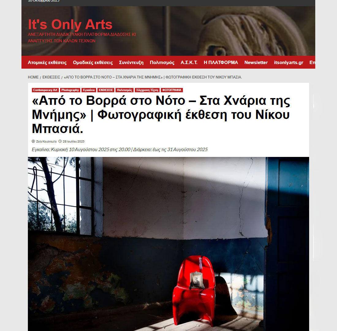 Ευχαριστώ τον Ζώη Κουτρούλη για το άρθρο του με αφορμή τις εκθέσεις μου “Από το Βορρά στο Νότο – Στα χνάρια της Μνήμης”.
