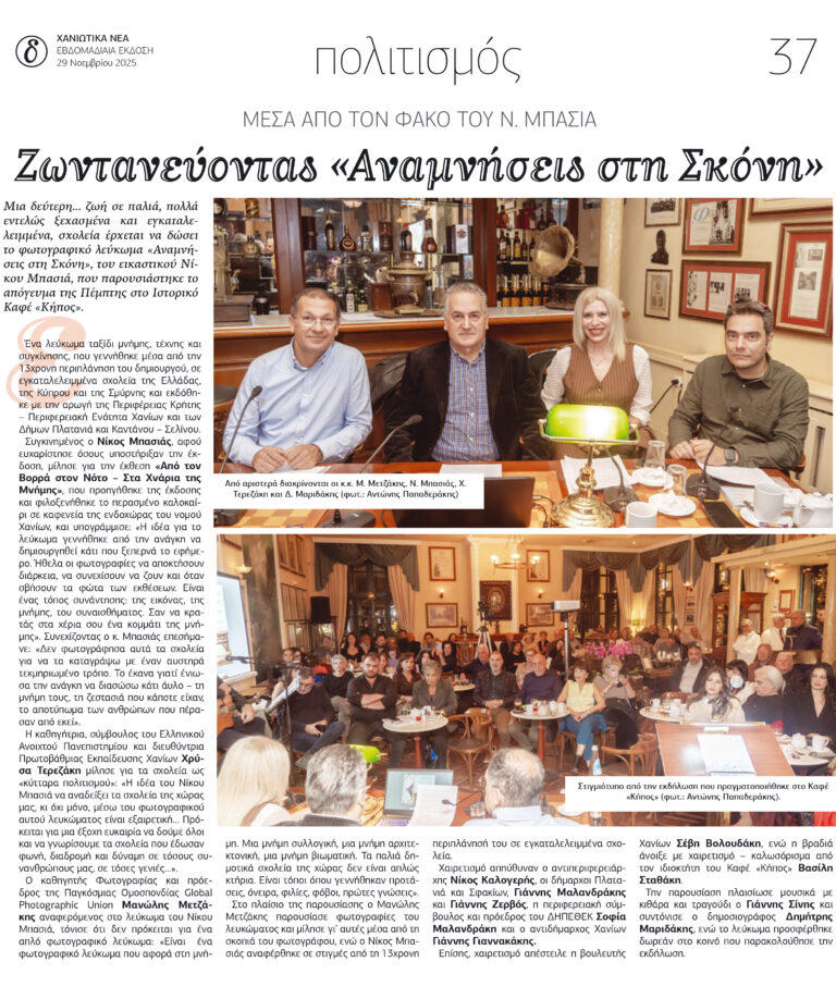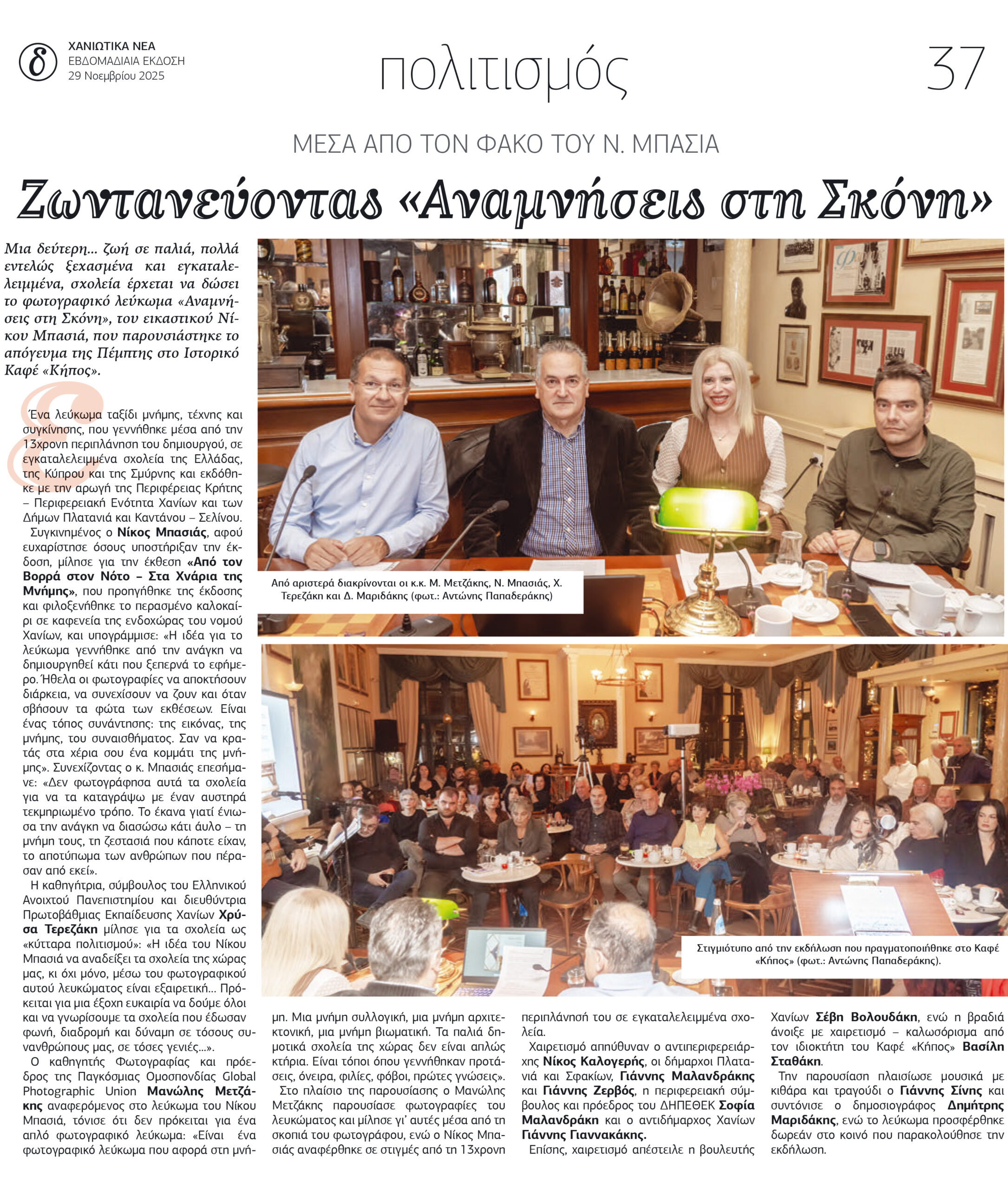 Ολοσέλιδο άρθρο στο ένθετο περιοδικό «Διαδρομές» της έντυπης εφημερίδας ΧΑΝΙΩΤΙΚΑ ΝΕΑ το Σάββατο 29 Νοεμβρίου 2025.