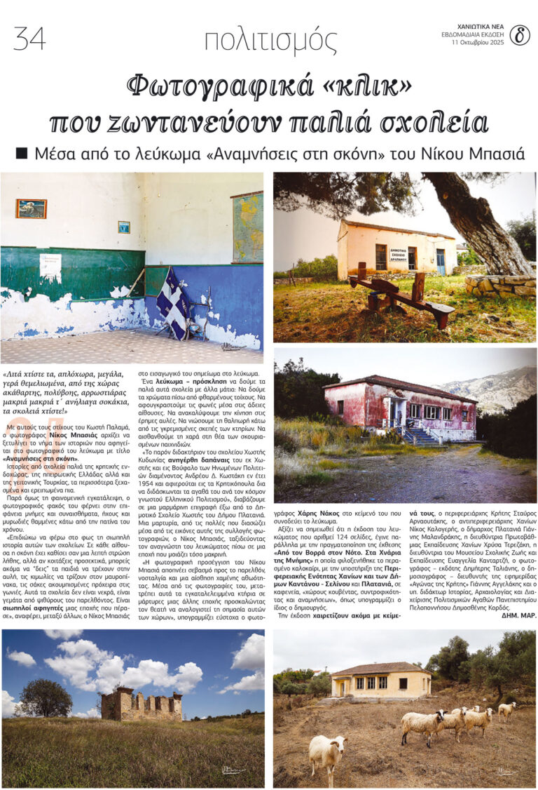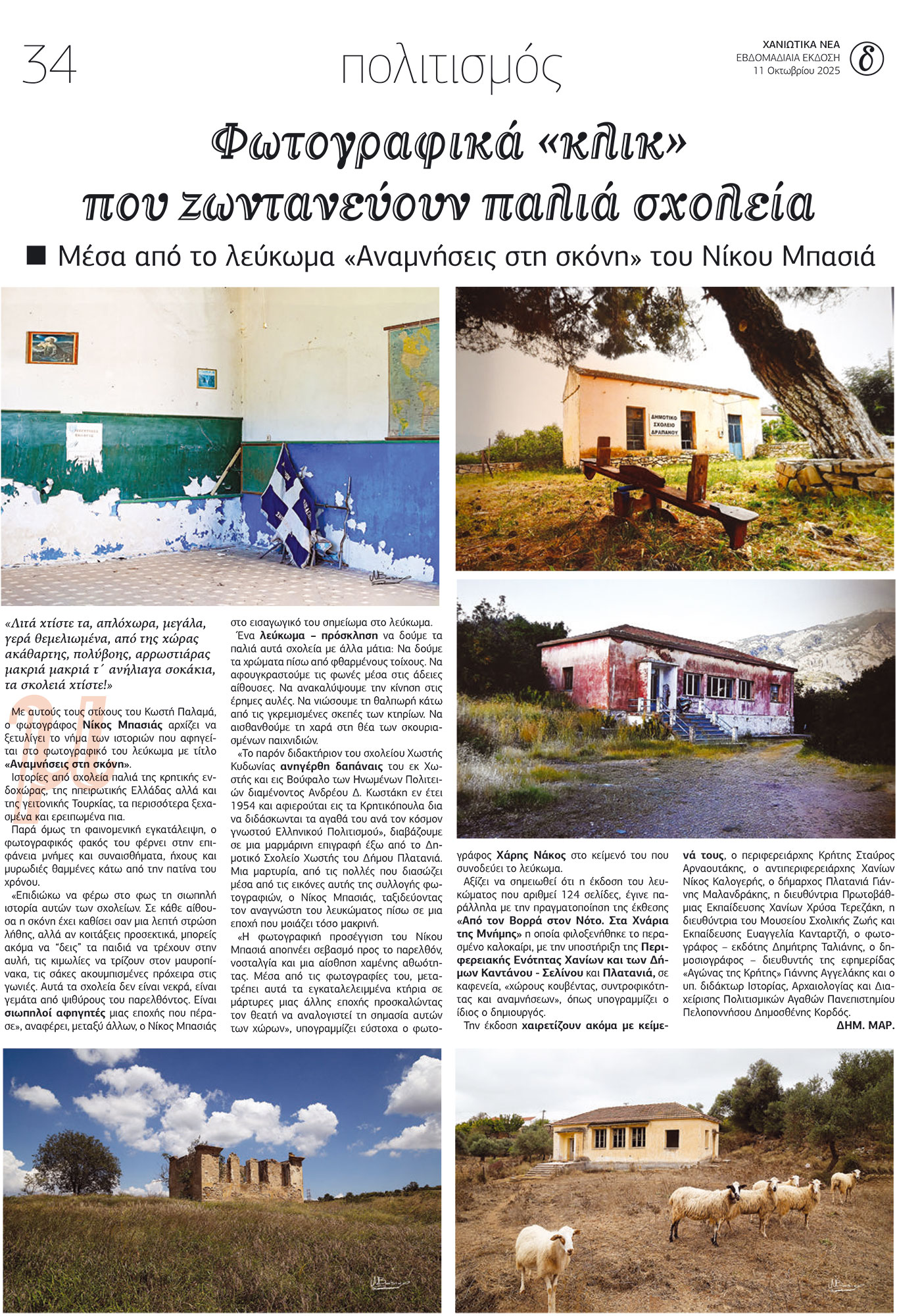Ολοσέλιδο άρθρο του Δημήτρη Μαριδάκη στο ένθετο περιοδικό «Διαδρομές» της έντυπης εφημερίδας ΧΑΝΙΩΤΙΚΑ ΝΕΑ το Σάββατο 11 Οκτωβρίου 2025.